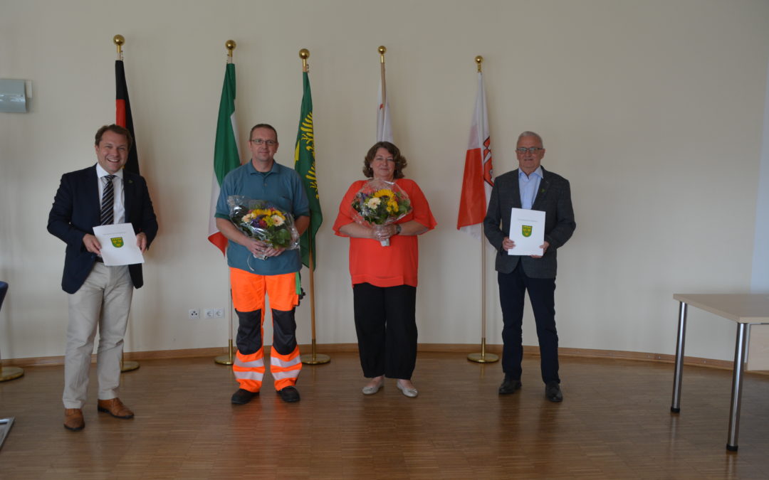 Markus Scheele und Monika Bohn feiern ihr Dienstjubi-läum Dass heutzutage noch langjährige Dienstjubiläen in einem Unternehmen gefeiert werden, ist eher zur Seltenheit geworden. Daher war es für Bürgermeister Dr. Martin Mertens und dem Allgemeinen Vertreter Hermann...