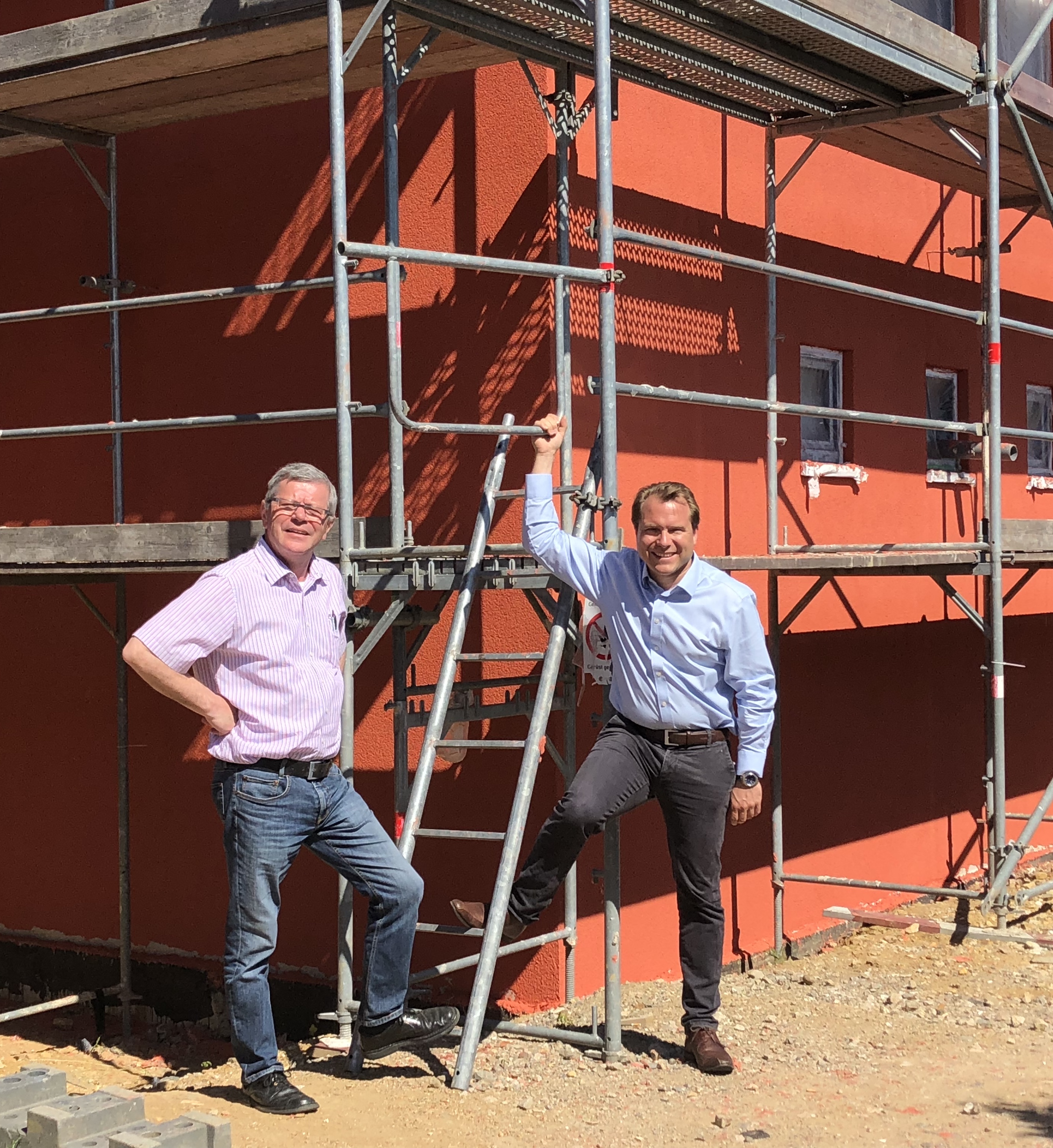 Mertens und Schneider begutachteten am Dienstag den aktuellen Baufortschritt an der Wache. Im Juli soll dann eine große Eröffnungsfeier stattfinden, zu der alle Bürgerinnen und Bürger eingeladen sind.