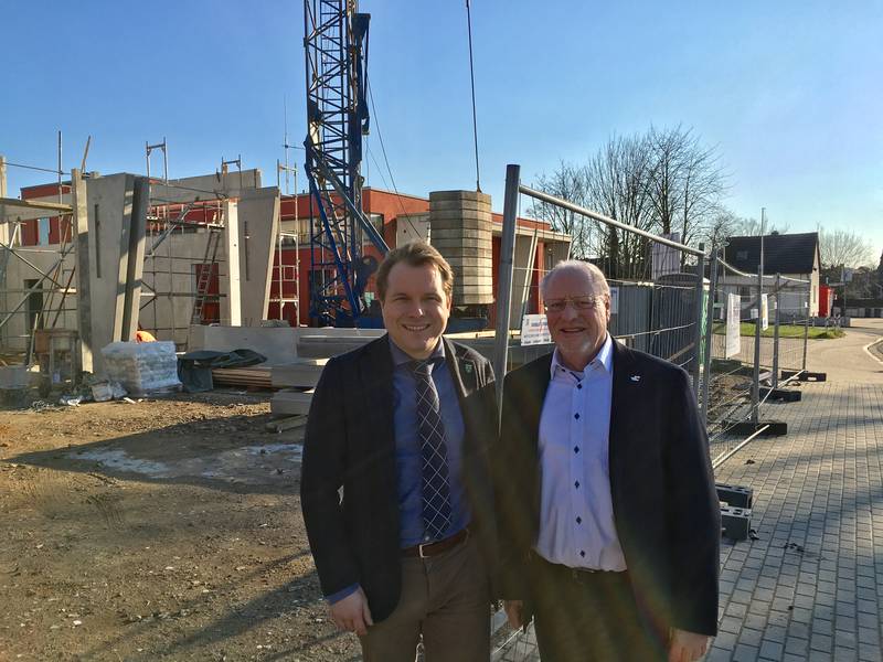 Gemeinsam mit Horst Fischer machte sich der Bürgermeister noch einmal vor Ort ein Bild über den Baufortschritt an dem Gebäude, das neben der Rettungswache auch eine Erweiterung des bisherigen Feuerwehrgerätehauses umfasst. Nach dem Richtfest im Januar gehen die Arbeiten weiter zügig voran, sodass mit einer planungsgemäßen Eröffnung zu rechnen ist.