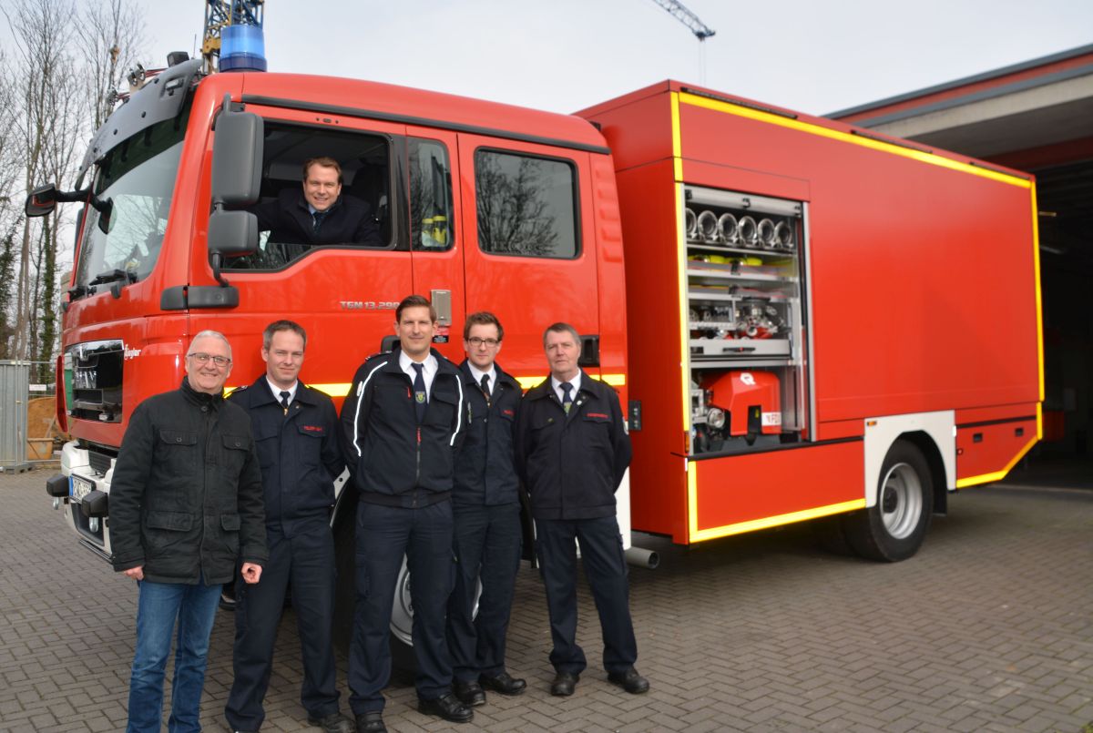Rommerskirchen Am Montag konnte Bürgermeister Dr. Martin Mertens als oberster Chef der Rommerskirchener Feuerwehr gemeinsam mit Gemeindebrandmeister Werner Bauer, dem Nettesheimer Löschzugführer Nils Henriksen, Ordnungsamtsleiter Hans Knelleken und Feuerwehrdezernent Herrmann Schnitzler den neuen „Gerätewagen Logistik 2“ für den Löschzug Nettesheim in Empfang nehmen.
