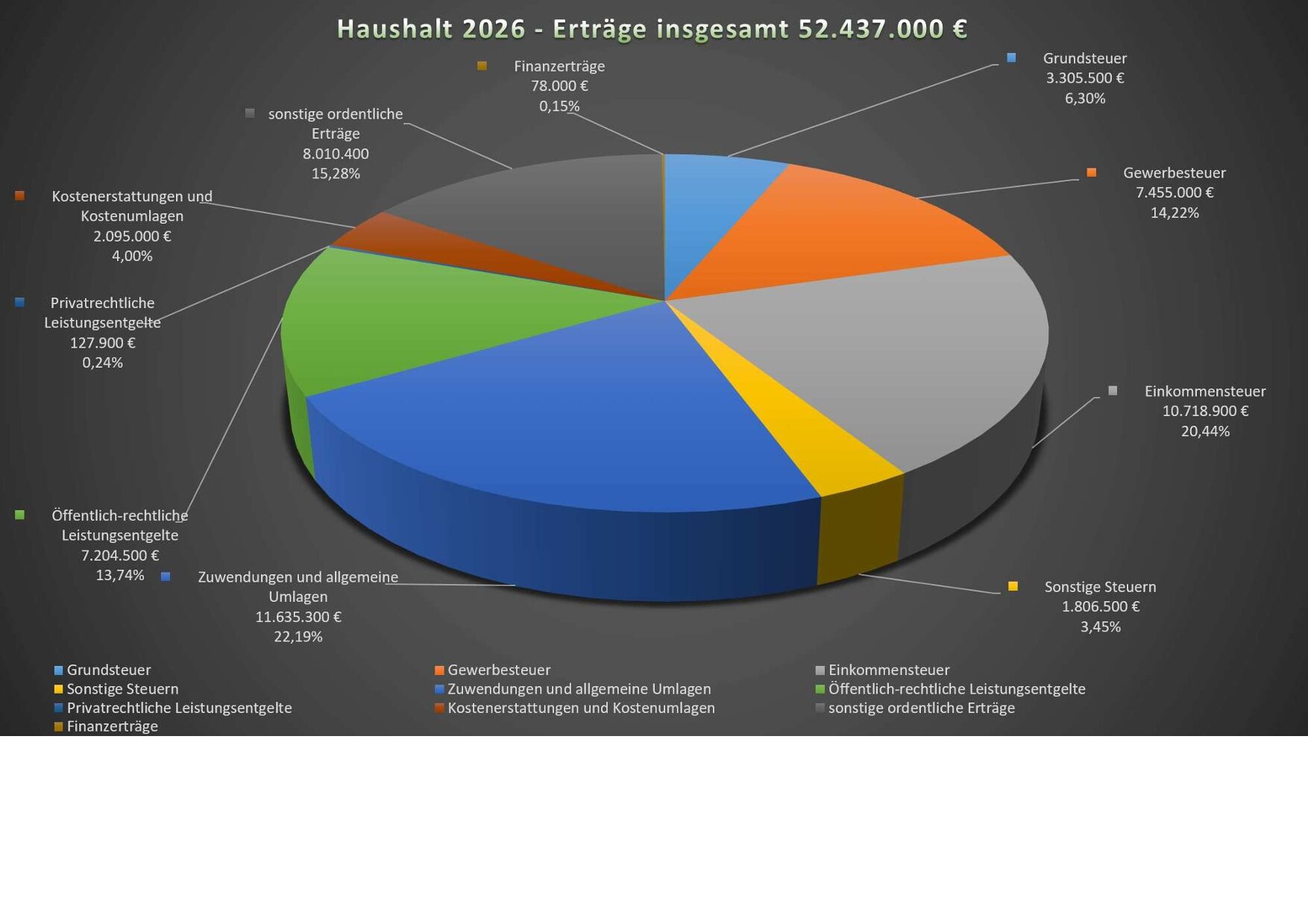 wir wollen mit Hilfe des digitalen Haushalts allen Interessierten die Möglichkeit bieten, die Finanzen der Gemeinde Rommerskirchen ganz einfach – mit wenigen Mausklicken – einzusehen. Im Vordergrund steht dabei das Ziel, die komplexe Systematik des Haushaltsplanes durch graphische Darstellungen zu veranschaulichen.